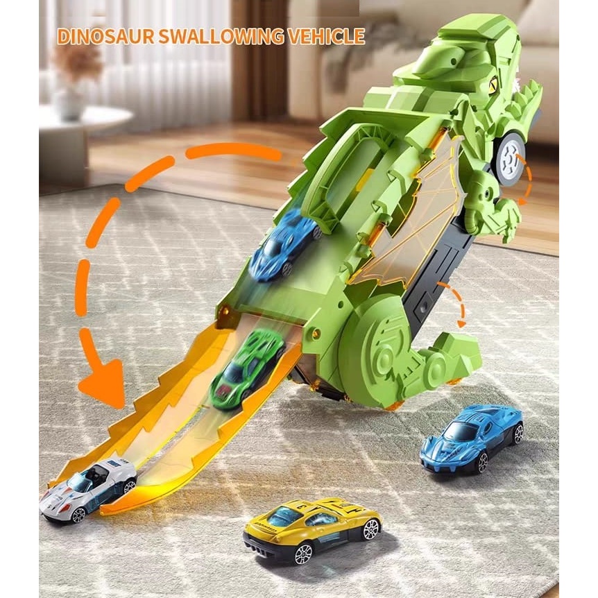 Mainan Anak Mobil Truk Dinosaurus Kontainer - Dino Slide Storage Car Truck Dino Swallowing Car
