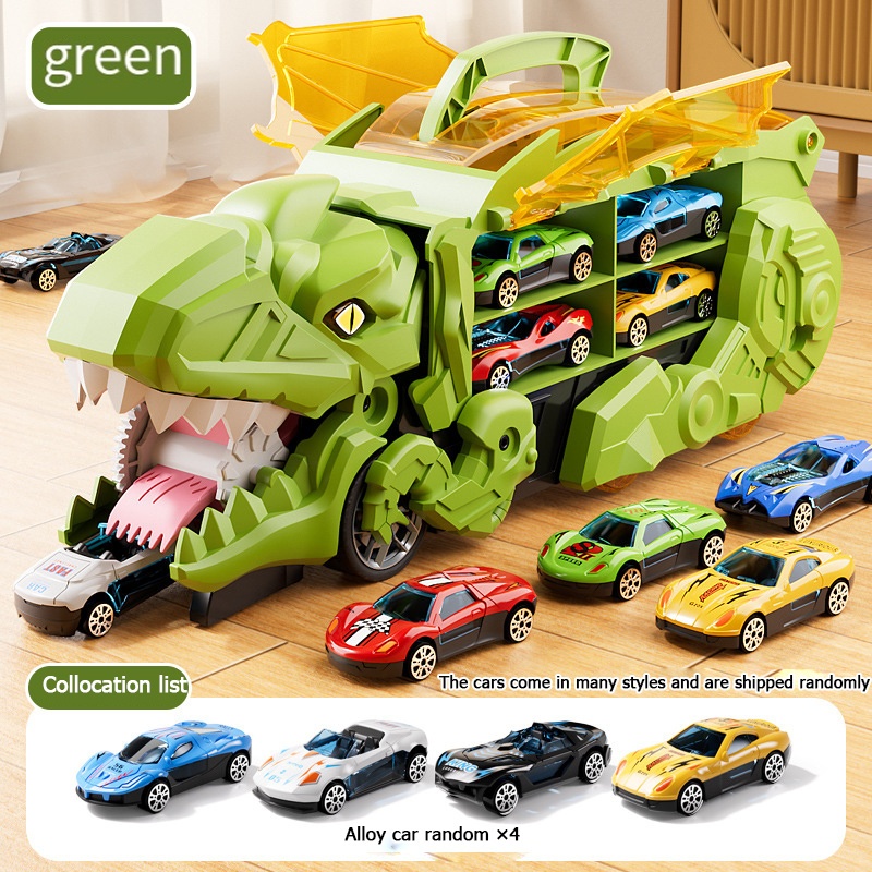 Mainan Anak Deformed Track Truck Dinosaur Deformation Free 8 PCS Mobil Kontainer dino Slide Storage Car truck dino swall
