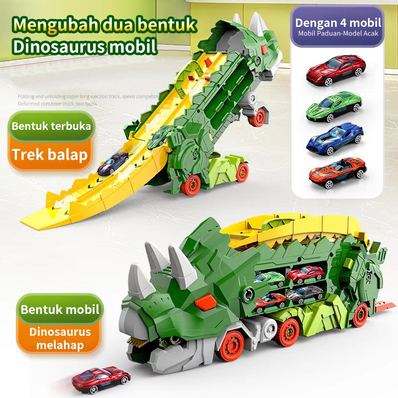 ZCTOY Transformed Dinosaur Mainan Truk Mobil Dengan Mobil 4PCS Alloy Dino Transport Car Gift Hadiah Ulang Tahun Anak unt