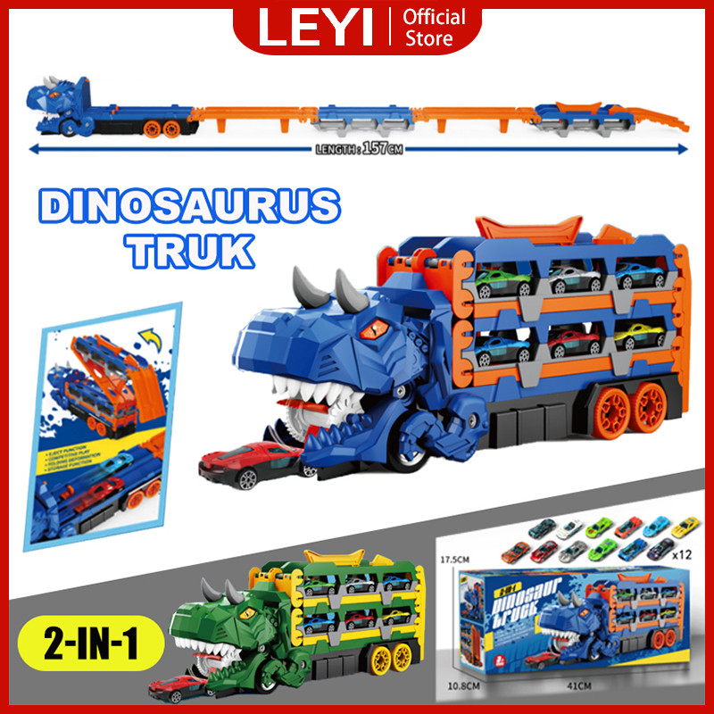 LEYI [157CM] Mobil Dinosaurus Mainan Anak Deformed Racing dengan Trek Balap Lipat Catapult Deformasi