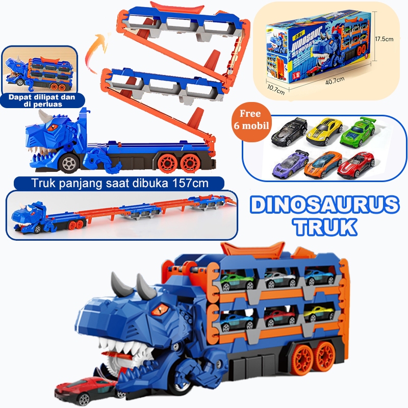 WANGAO [157CM] Mainan Mobil Dinosaurus Racing Dengan Trek Balap Lipat Catapult Deformasi Deformed