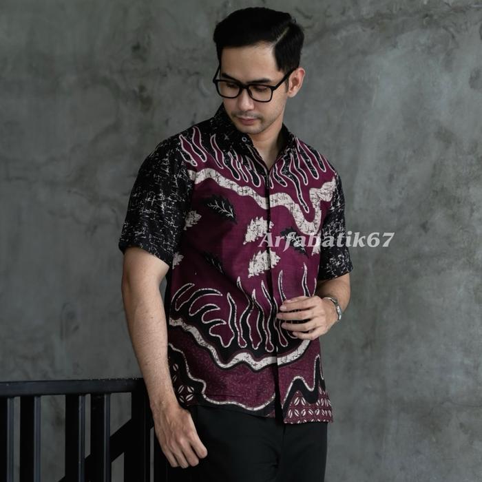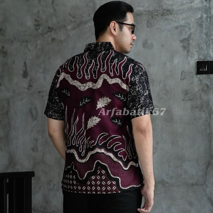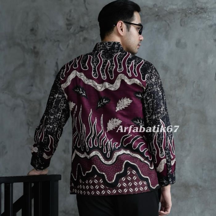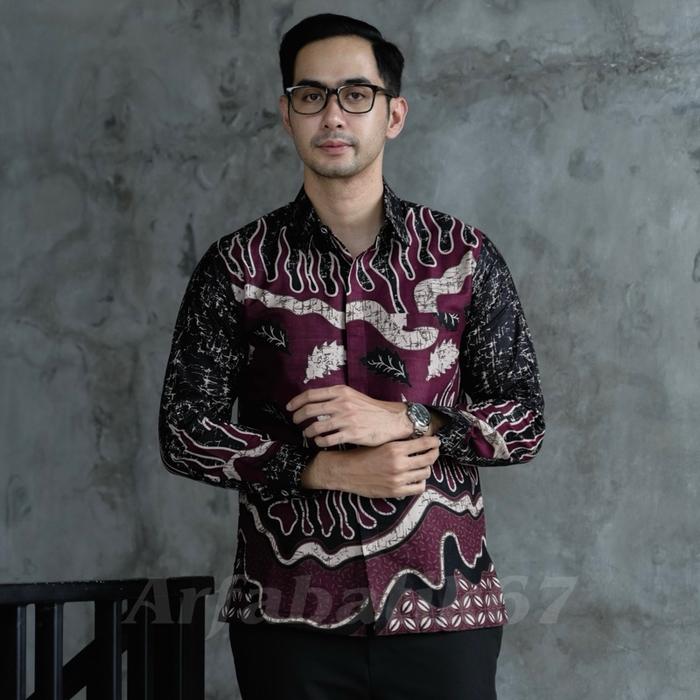 new BURGANDY motif KASTARA baju batik pria tangan panjang katun prima premium lapis furing hero