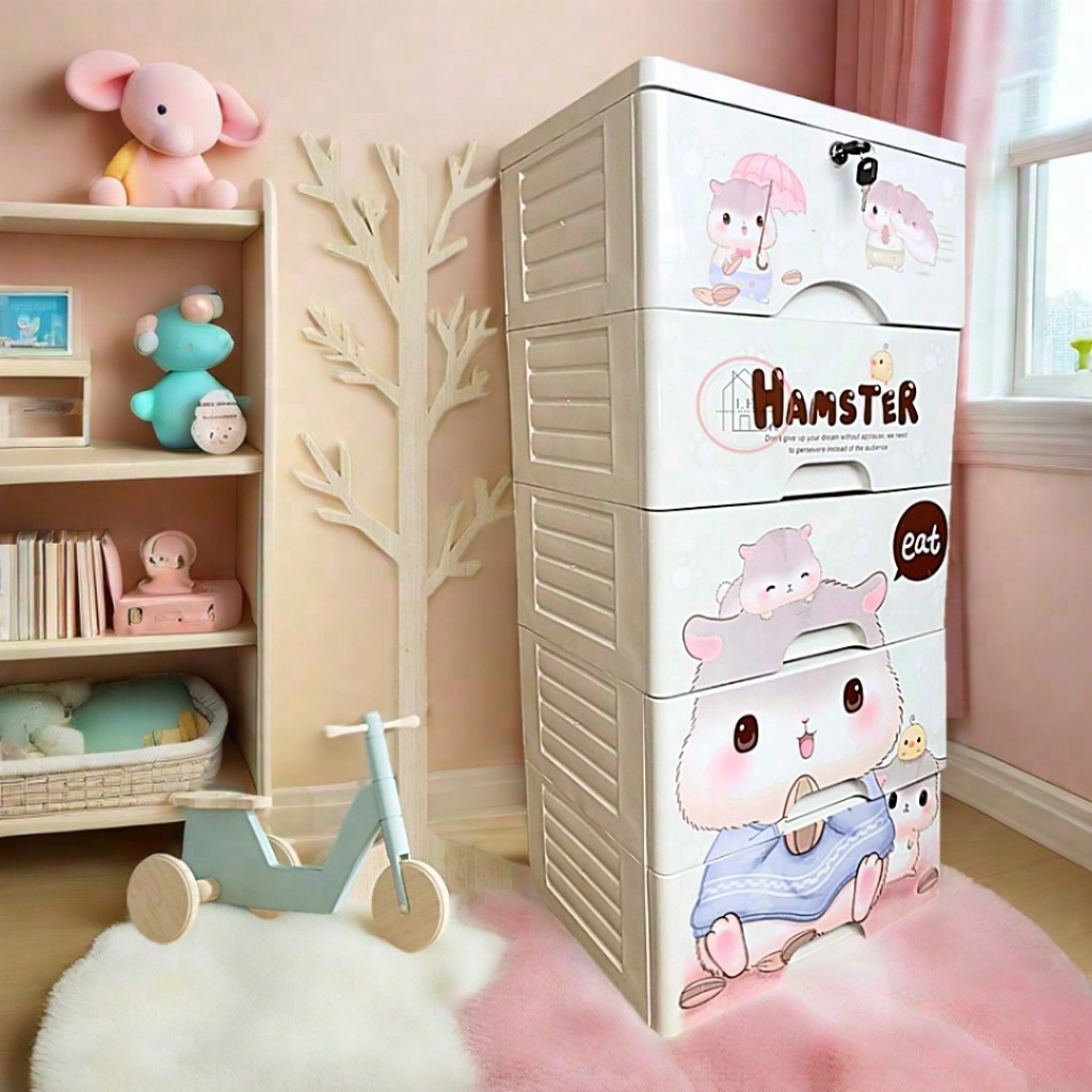 LS Lemari Pakaian Plastik Anak Laci Plastik Susun Bayi Perempuan Laki Laki Lemari Plastik Susun