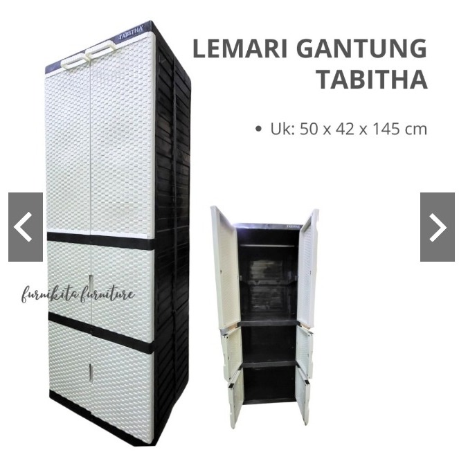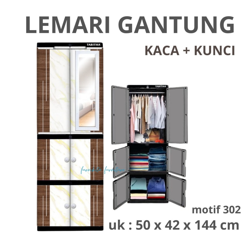 LEMARI PAKAIAN PLASTIK GANTUNG CERMIN KUNCI ROTAN SUSUN 4