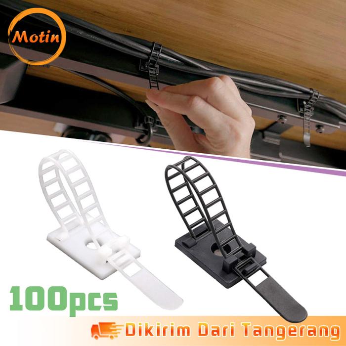 100Pcs Klip Pengikat Kabel Adjustable Clip Penjepit Kabel Tempel - Putih