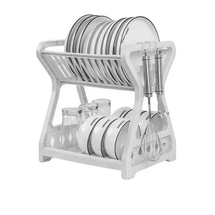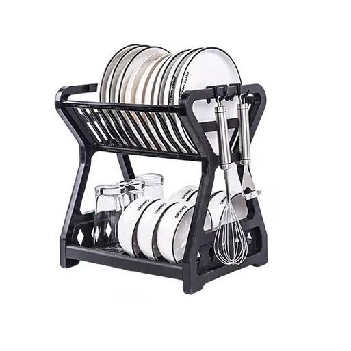 Rak Piring 2 Susun Plastik Tempat Pengering Piring Mangkok Gelas - hitam
