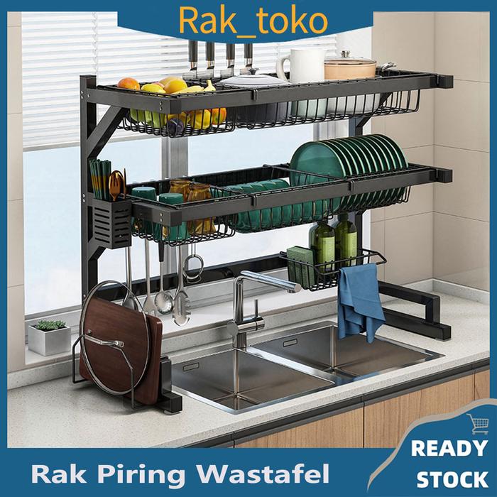 Rak Piring Wastafel Stainless steel Rak dapur Kokoh Kuat Rak Cuci Piring Wastafel Dengan Aksesoris - 65 CM FULL 2 SUSUN