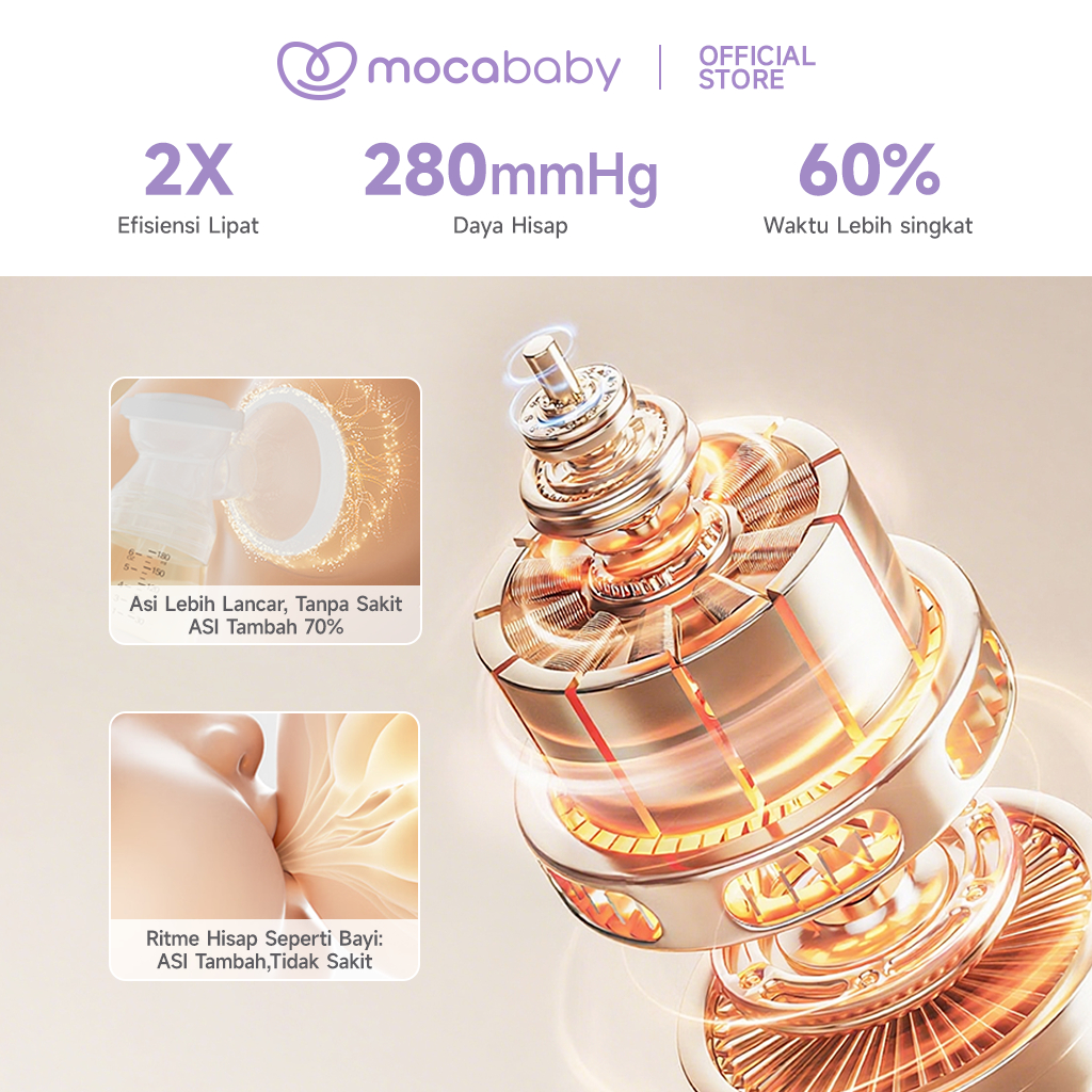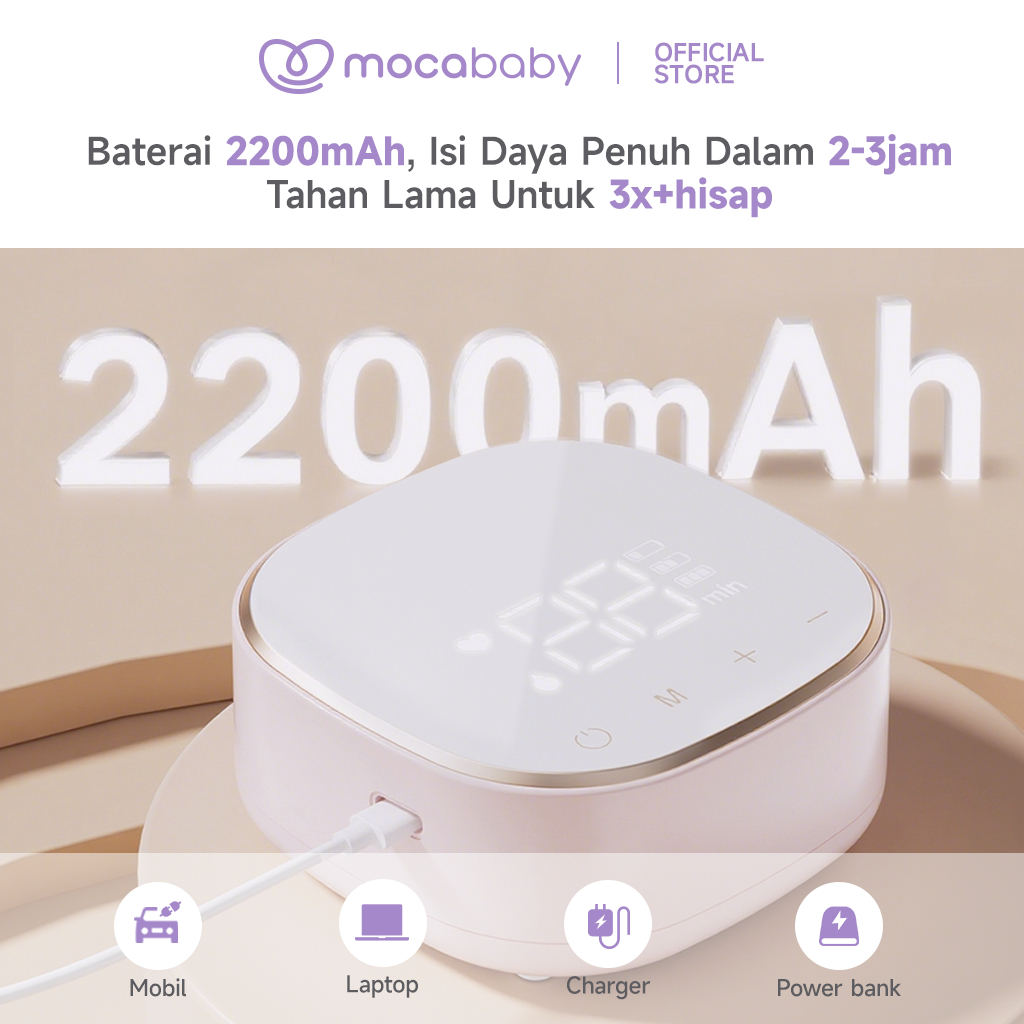 Mocababy Pompa ASI Elektrik Double 2in1 2200mAh Double Botol Breast Pump Dengan Dot (ASI Bayi Baru Lahir) Hisap Kuat BPA