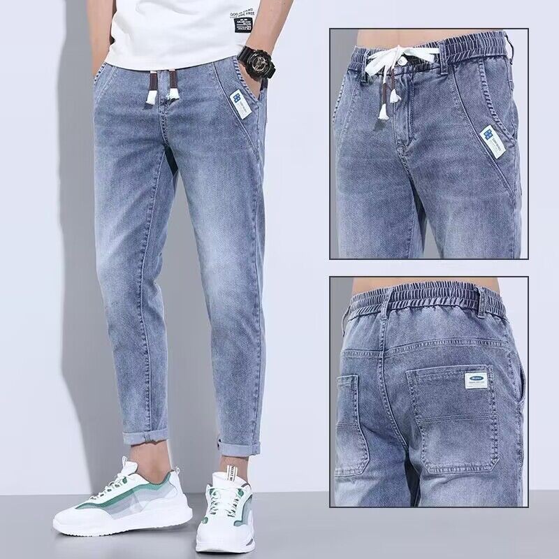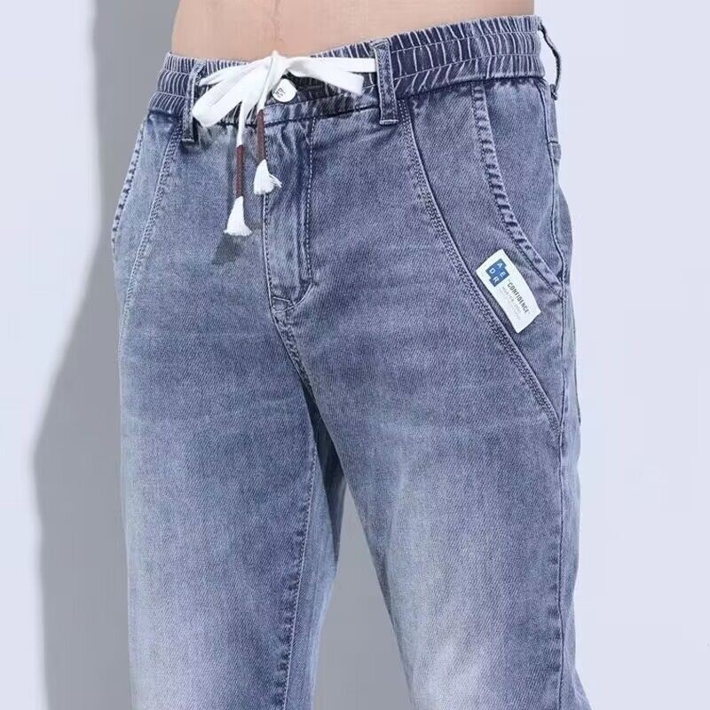KeyBoy Celana jeans pria panjang baggy kulot dewasa pinggang karet denim casual pants korean style