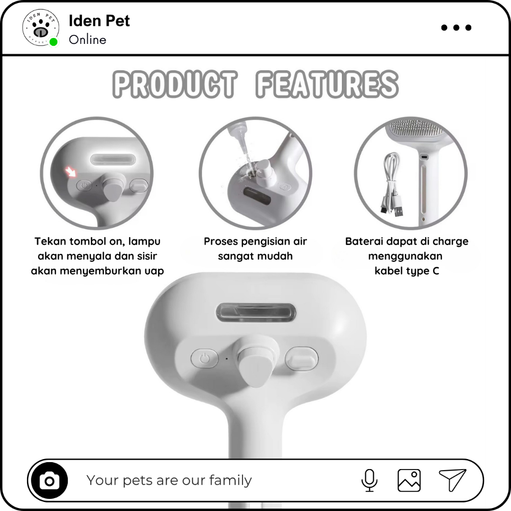 IDEN PET Sisir Uap Kucing Sisir Bulu Rontok Anjing Sikat Hewan Pet Grooming Brush Spray