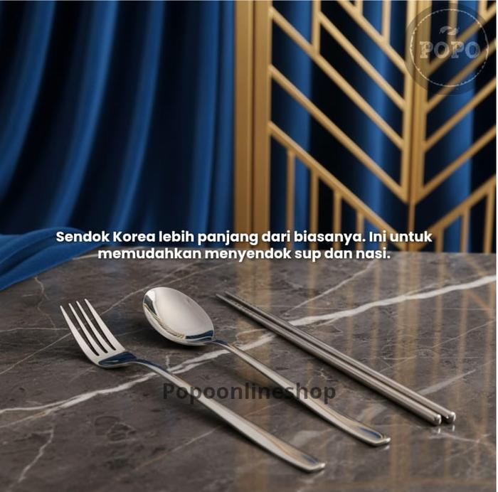 Terlaris Sujeo Korea TEBAL Alat Sendok Garpu Sumpit Makan Korea Satuan Set 6pc