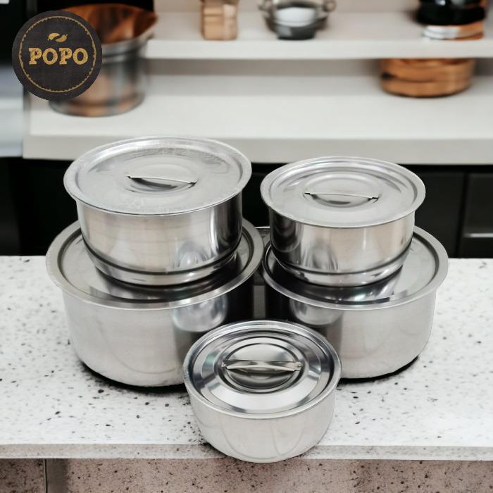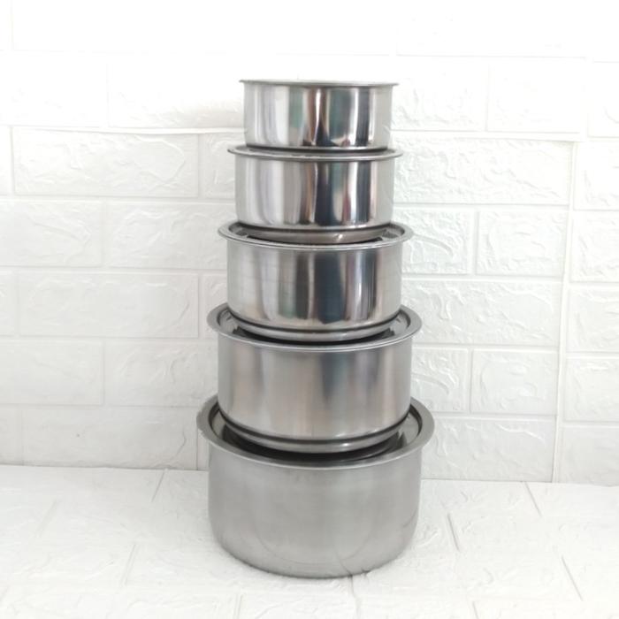Murah Baskom Mangkok Stainless Plus Tutup Wadah Bumbu Makanan Minyak - 16 cm Hemat