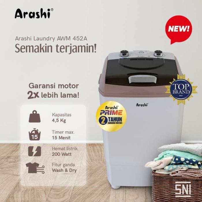 Arashi Laundry AWM 452A Mesin Cuci Mini 1 Tabung 4.5 KG AWM452A Air - Putih
