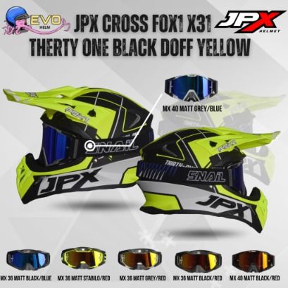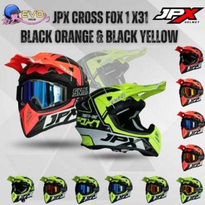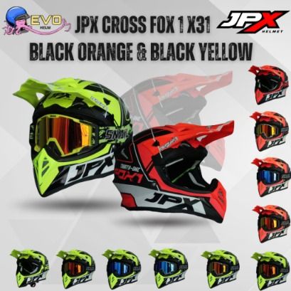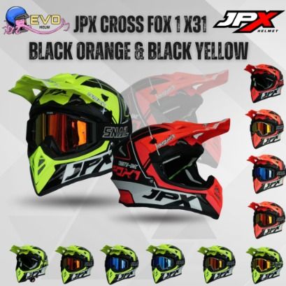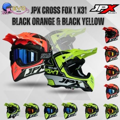 JPX CROSS FOX1 - X31 BLACK/ORANGE & BLACK/YELLOW PAKET GANTENG GOOGLE SNAIL ORIGINAL HELM MOTOCROSS