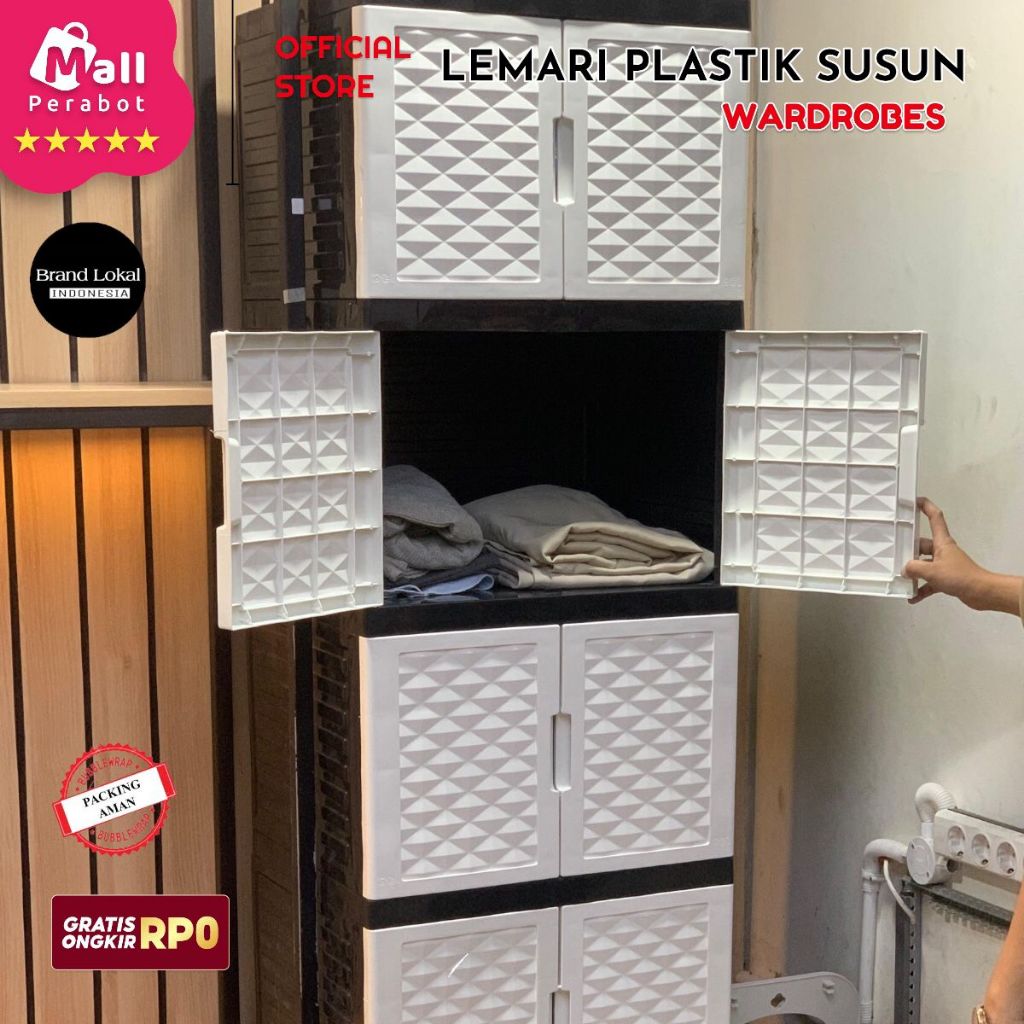 Mall Perabot | Lemari Pakaian Susun Wardrobe Diamond Plastik Persegi | Rak Baju Tingkat Jumbo Pintu Serbaguna Murah