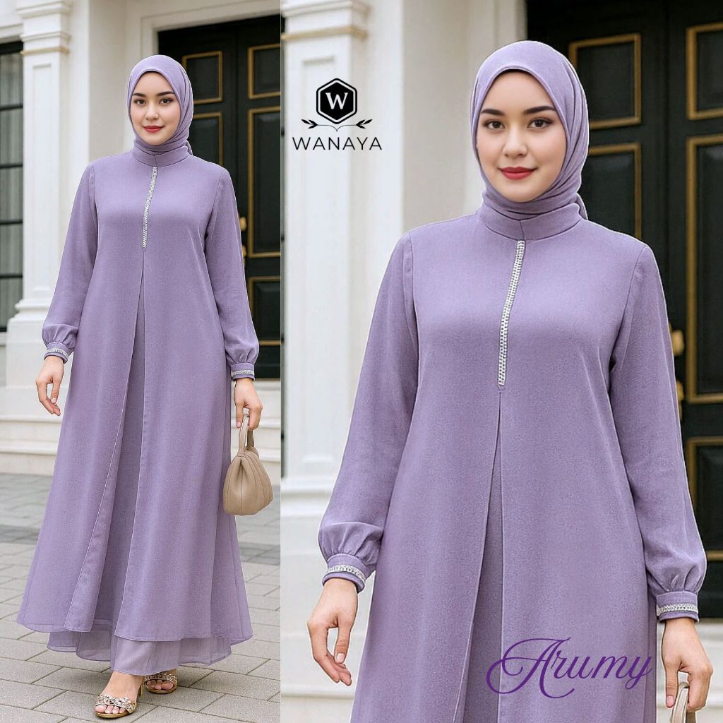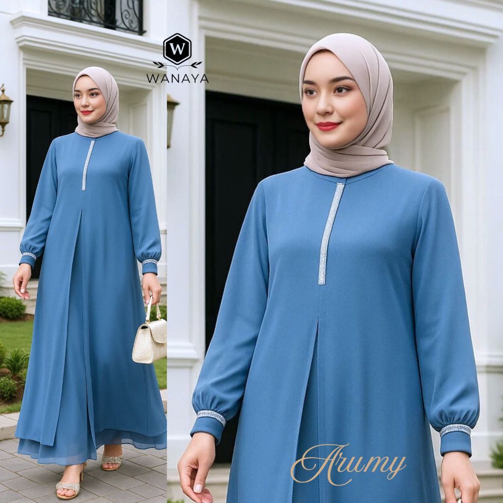 Arumy Gamis Trendy Muslim el Terbaru Ceruty Babydoll Full Puring Payet Swarovski Simple Elegan