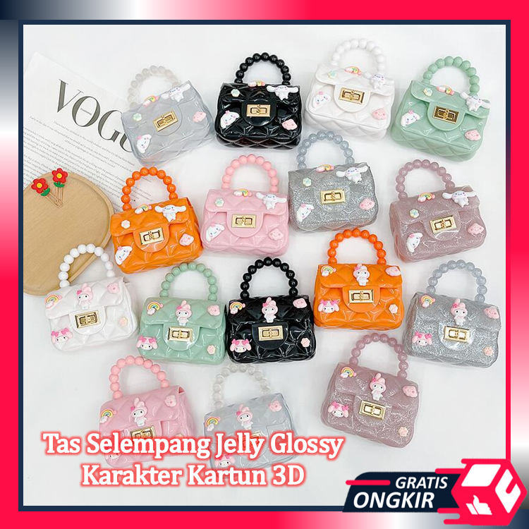 Gratis Ongkir - T5640 Tas Selempang Jelly Glossy Karakter Boneka / Tas Jelly Bag Mutiara Gaya Korea / Tas Selempang Anak