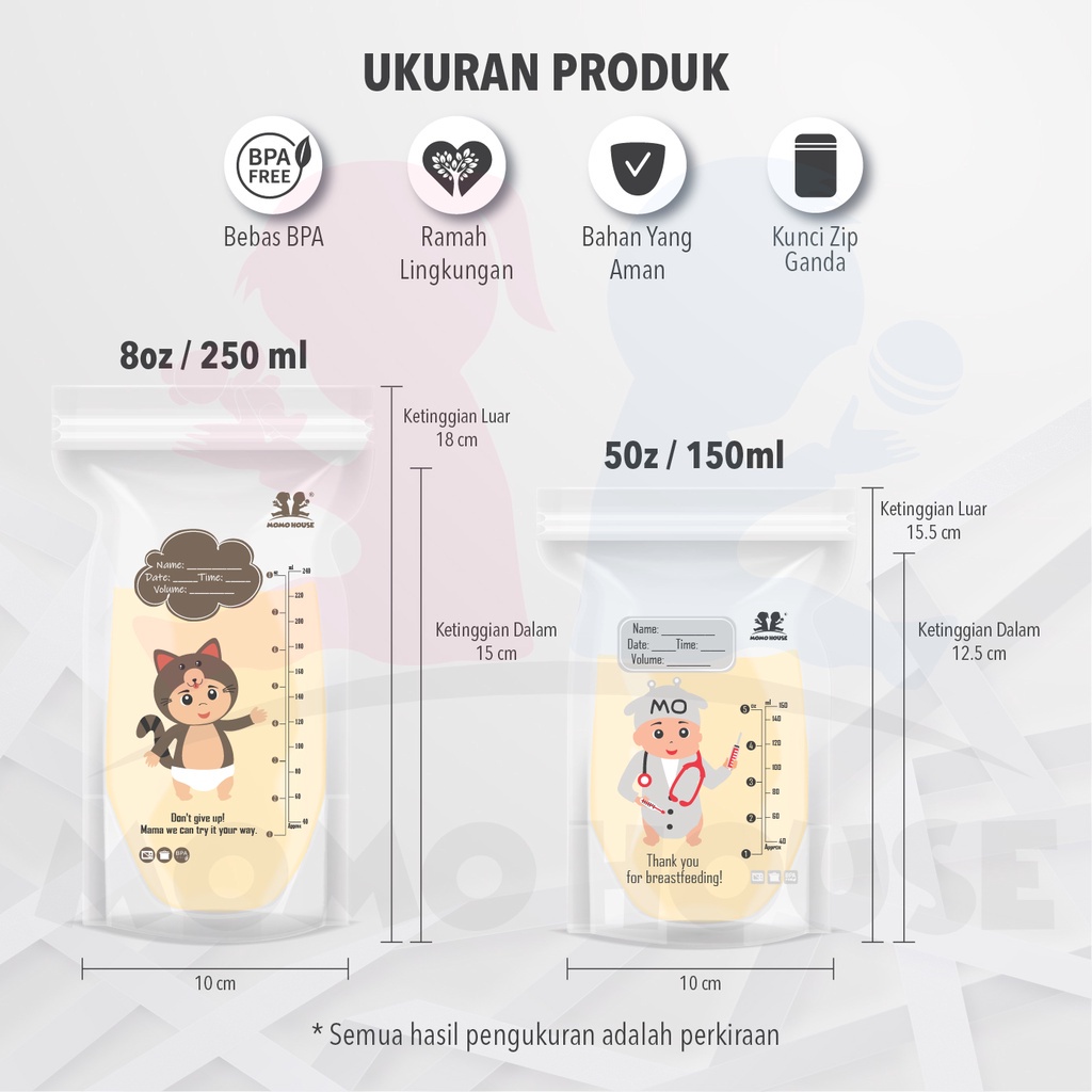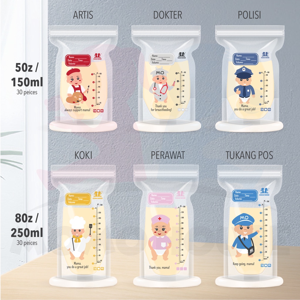(30 Pcs) MOMO HOUSE 150Ml/250Ml Kantong ASI Plastik ASI Breastmilk Storage Bag Breastmilk Storage Double Zipper