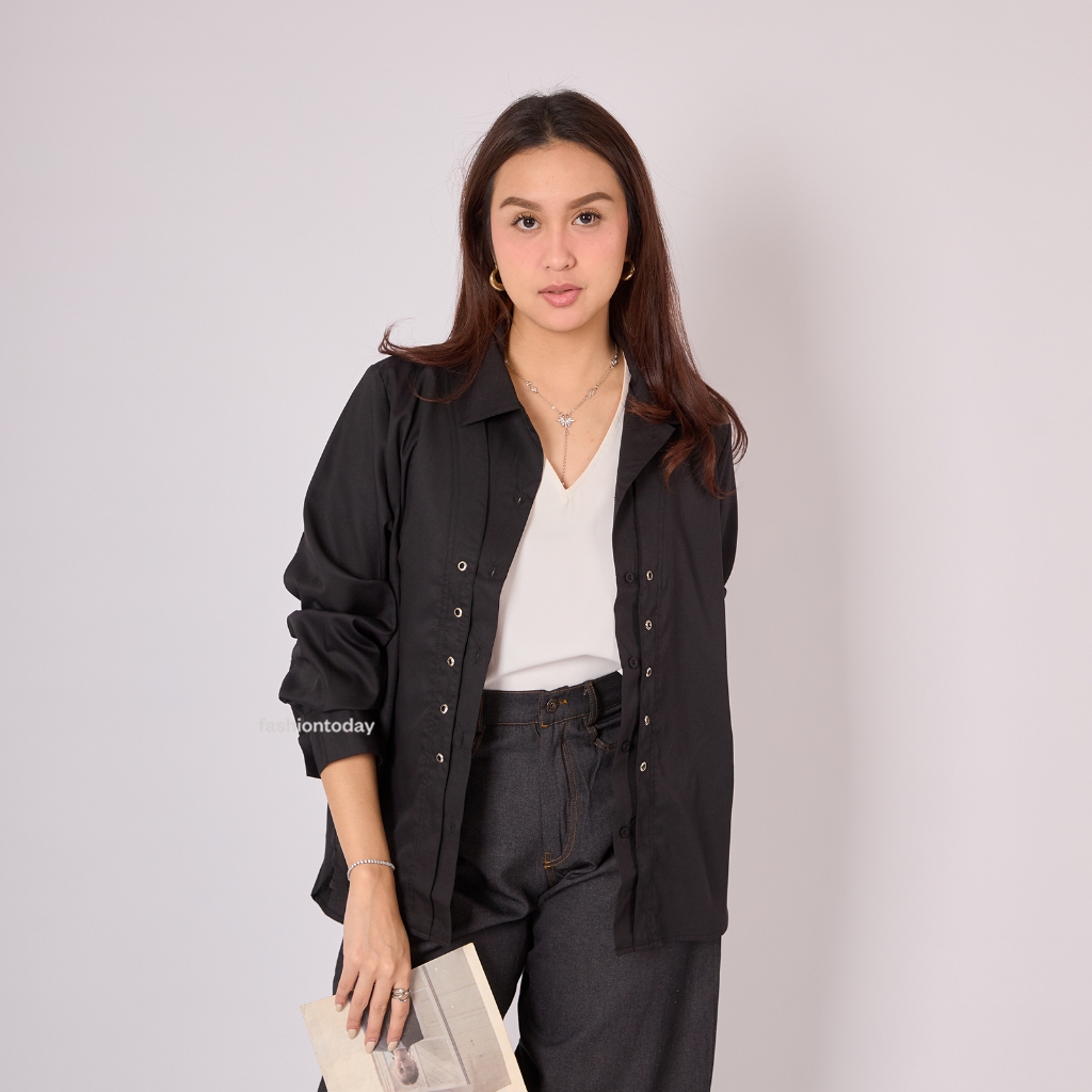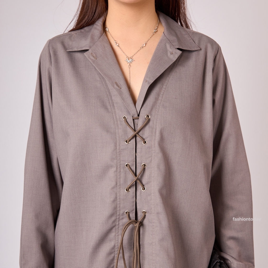 Hera Shirt - Kemeja Wanita Premium Lengan Panjang Details Aksen Tali Lepas Pasang - Bisa Sampai Big Size 90kg Fashiontoday