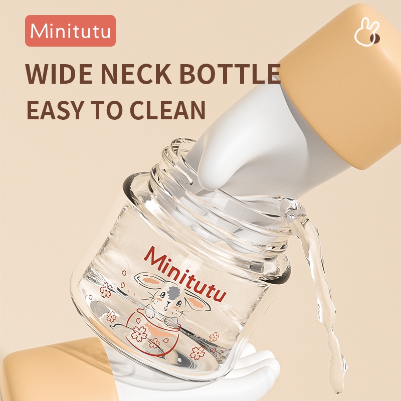 Minitutu Botol Susu Kaca 80/160/240MIBotol Susu Kaca Bayi Anti Kolik BPA Freeop Botol Susu Bayi Newborn