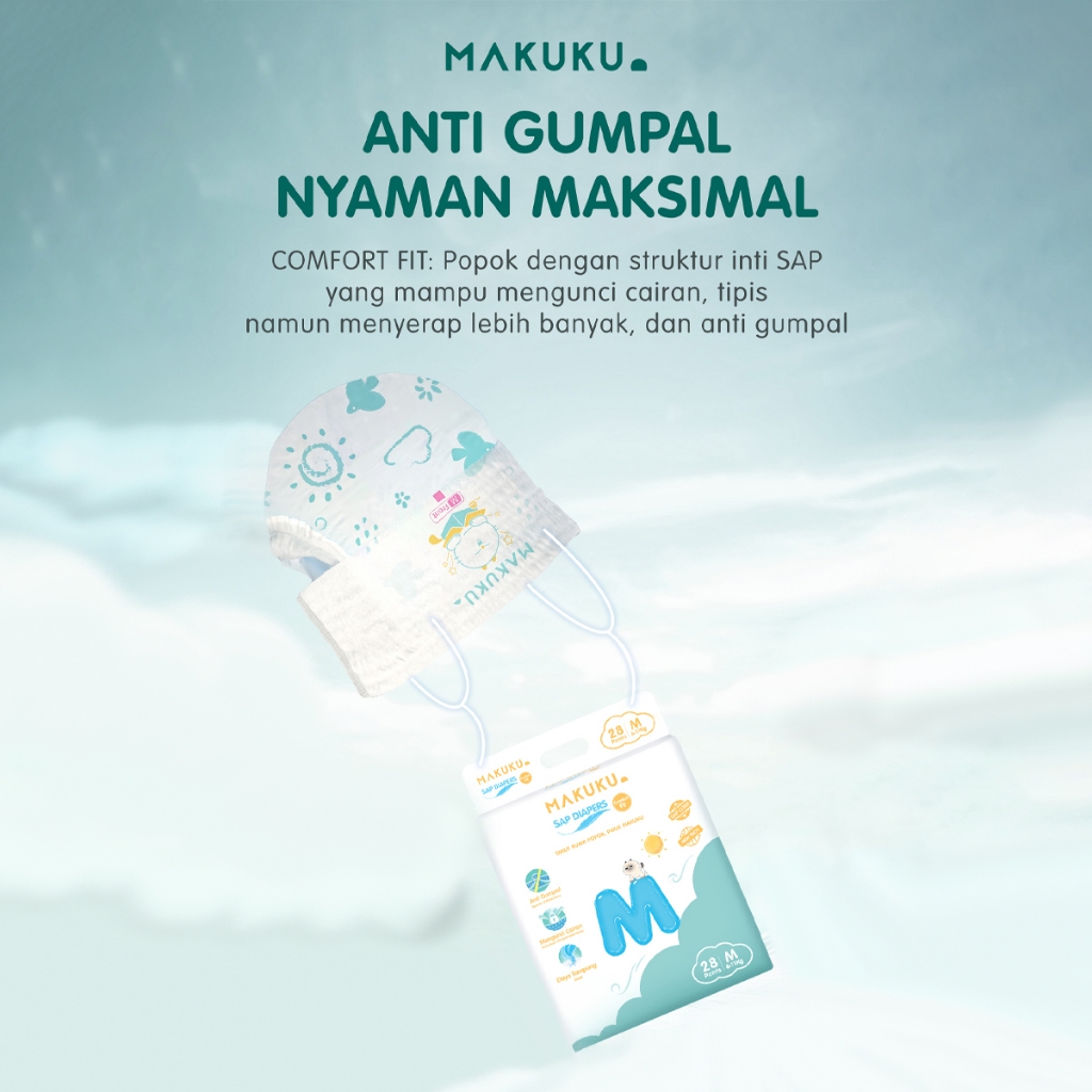 1 PACK MAKUKU SAP Diapers Comfort Fit PantsTape NBSMLXlXXL Popok Bayi Tipis Extra Dry Anti Gumpal Mengunci Cairan Cepat Kering Type CelanaPerekat