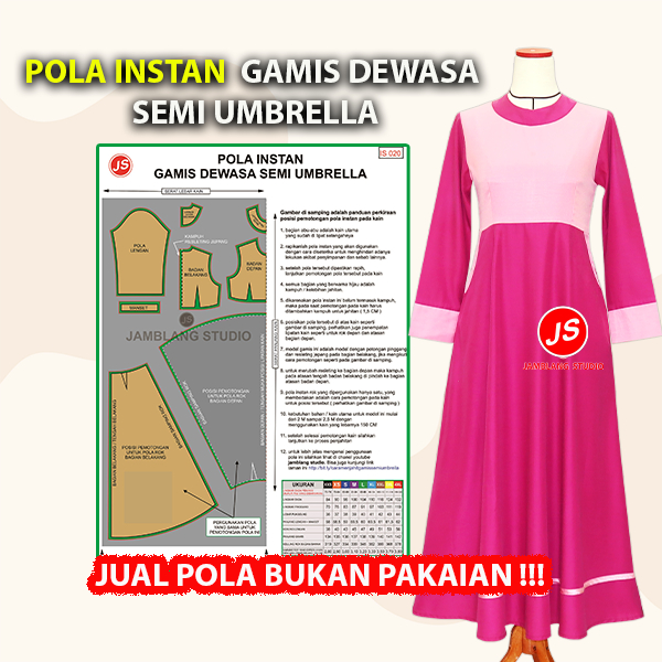 Paket Pola Instan All Size Gamis Wanita Dewasa Semi Umbrella | Pola Semua Ukuran XXS-4XL
