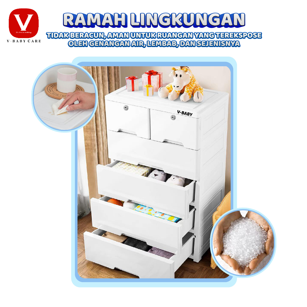 V-BABYCARE Lemari Pakaian/Lemari plastik Cabinet Ukuran Jumbo 5 Tingkat Termurah Dengan/VBABY-T1
