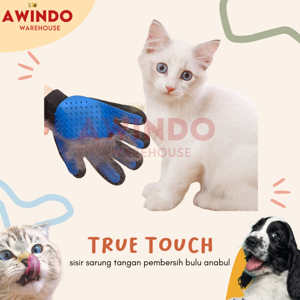 TRUE TOUCH - Sarung Tangan Sisir Bulu Kucing Anjing Kelinci Pet Grooming Deshedding Glove