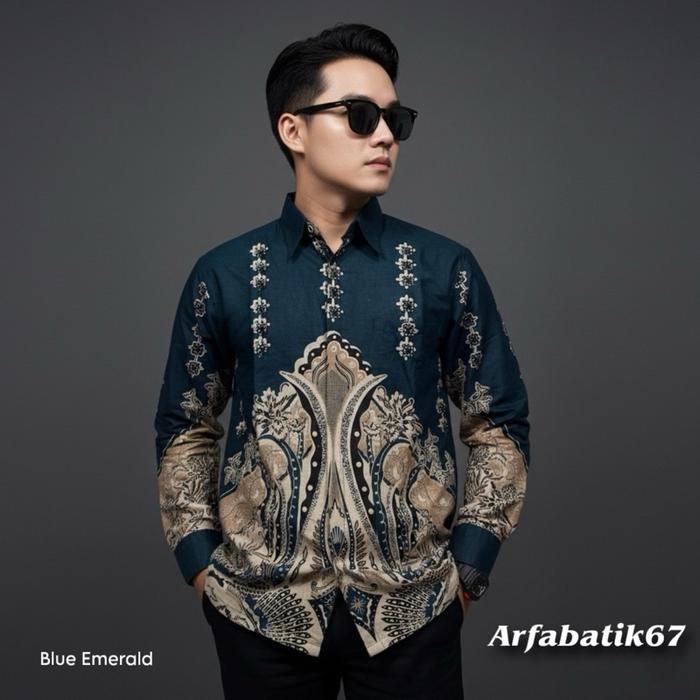BLUE EMERALD GUNUNGAN Kemeja batik pria lengan panjang katun prima premium lapis furing hero ready seragaman