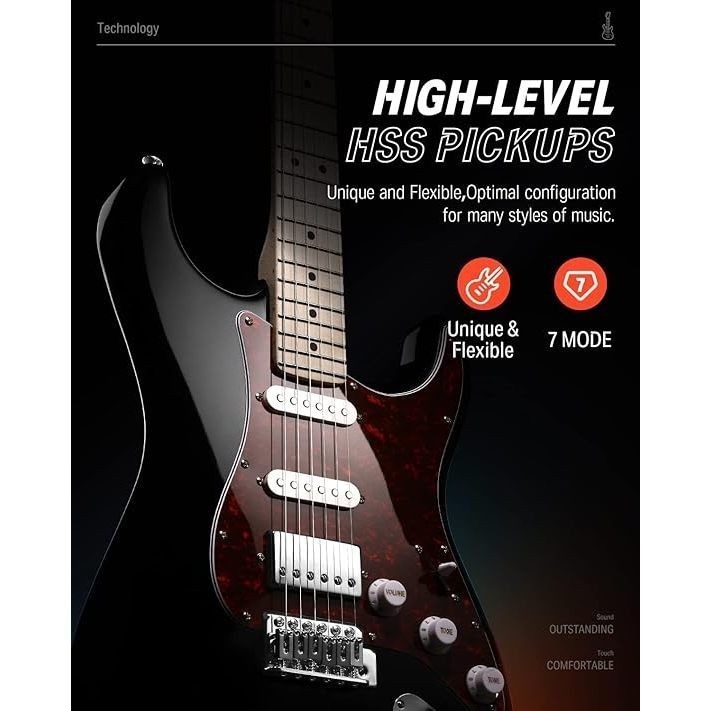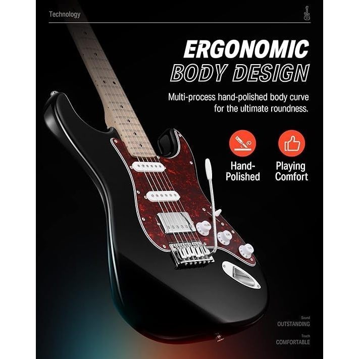 Gitar Listrik Full Set Donner DST - 152B Gitar Elektrik - Black