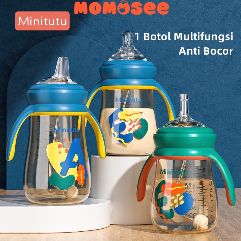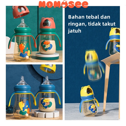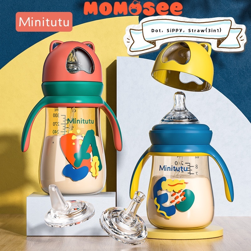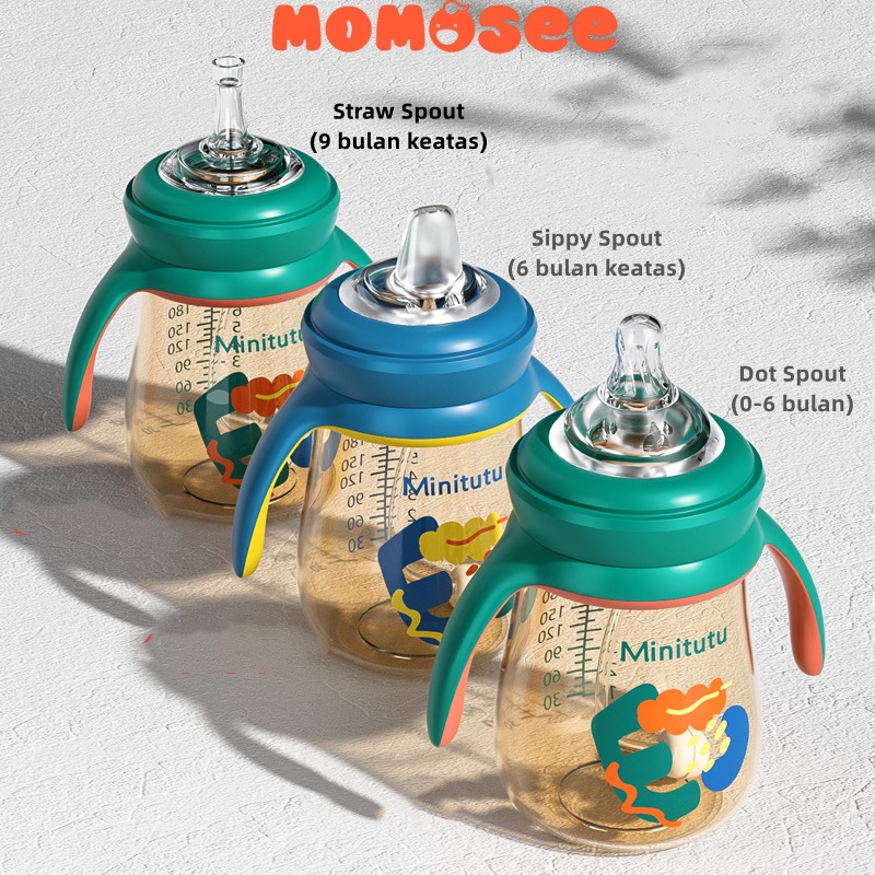 Momosee 3in1 Botol Susu PP Wide Neck Dot Sippy Straw Anti Kolik 240ml 300ml BPA Free BB09