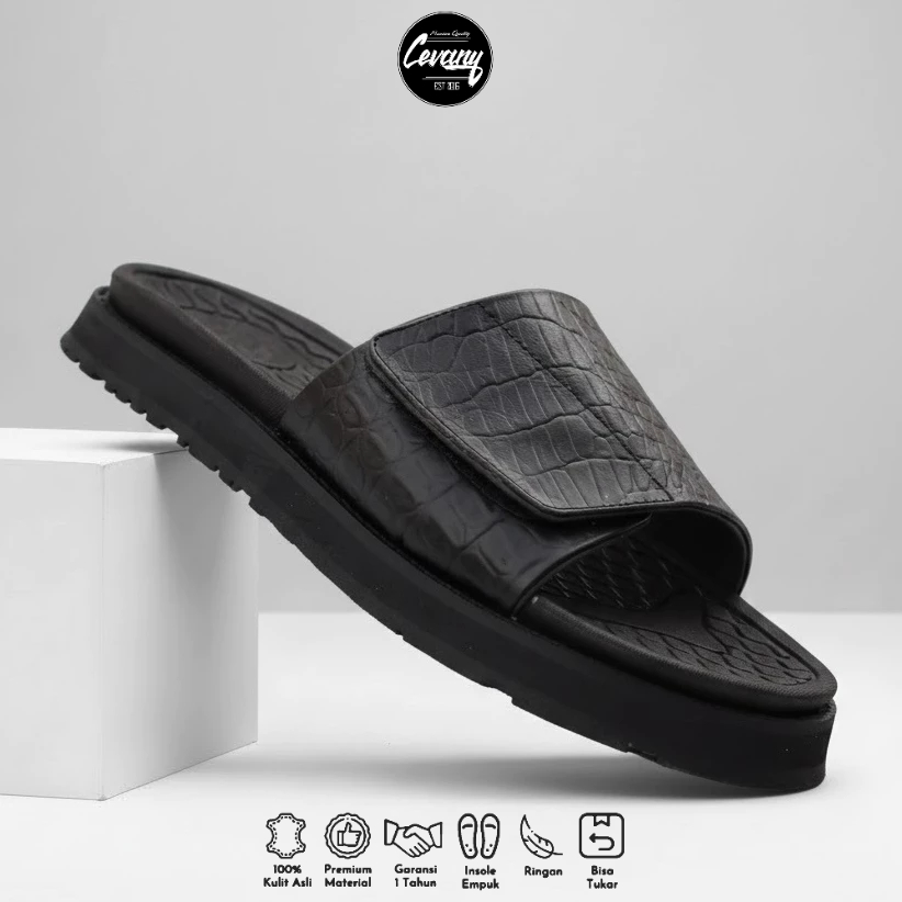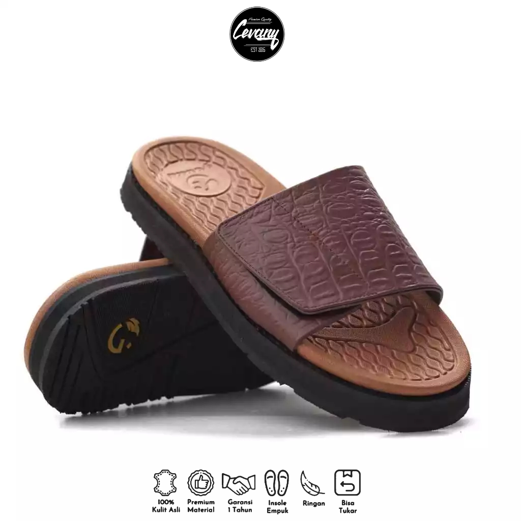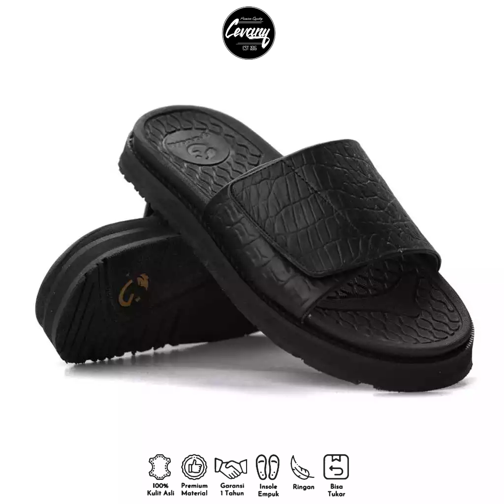 CEVANY - Sandal Slide Pria Kulit Asli Kasual Ukuran 39-44 - JAYDIN