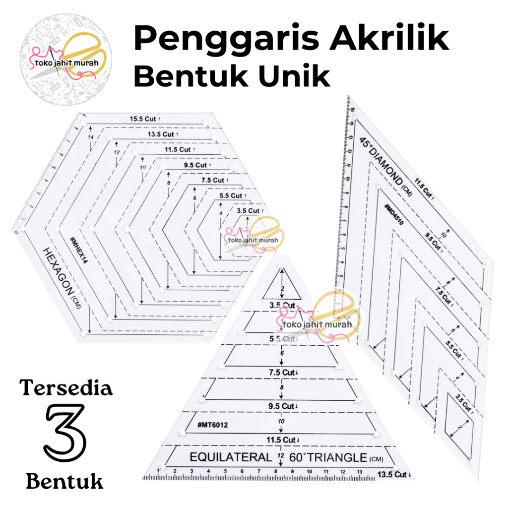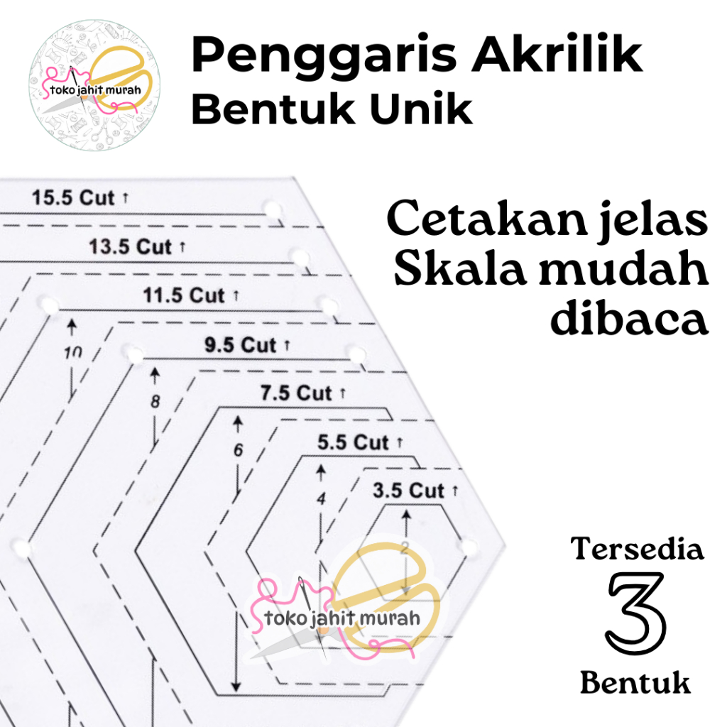 Penggaris Quilting bahan Akrilik / Hexagon /Segitiga / Diamond / Penggaris Jahit Pola / Quilting Ruler