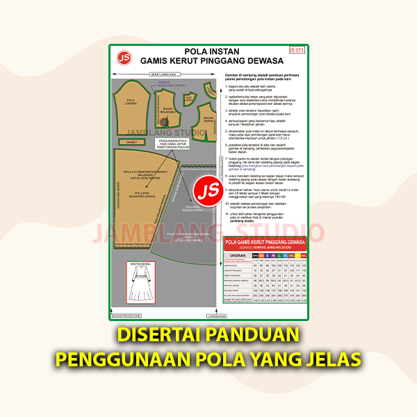 Paket Pola Instan All Size Gamis Kerut Pinggang Dewasa | Pola Semua Ukuran XXS-4XL