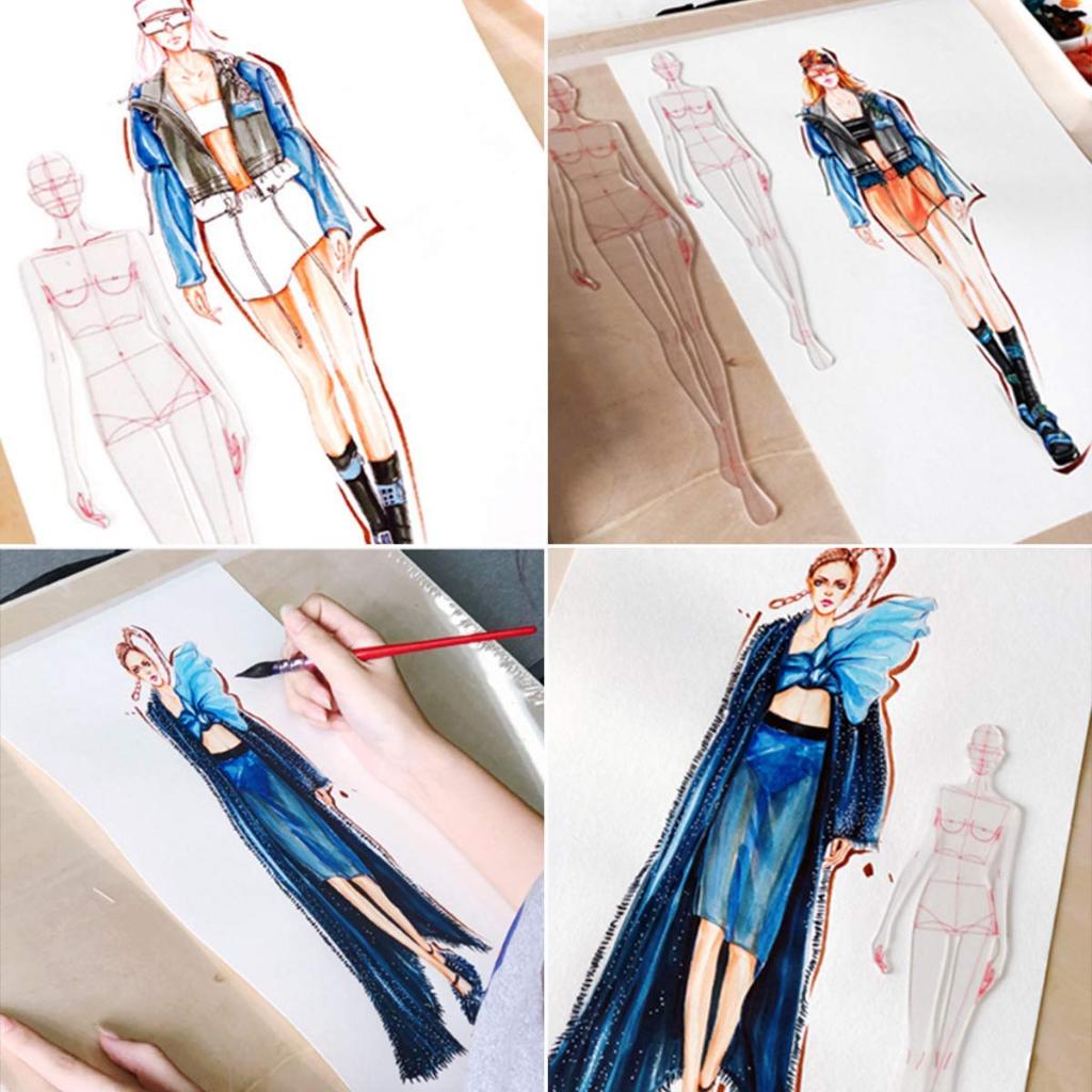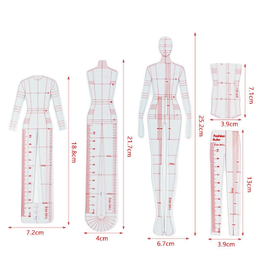 4/9Pcs Ukuran A4 Fashion Sketching Ruler / Penggaris Fashion Figure / Penggaris Cetakan Gambar
