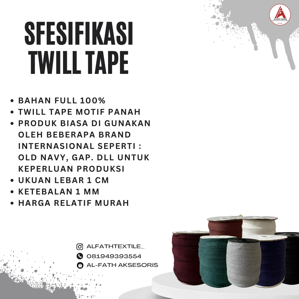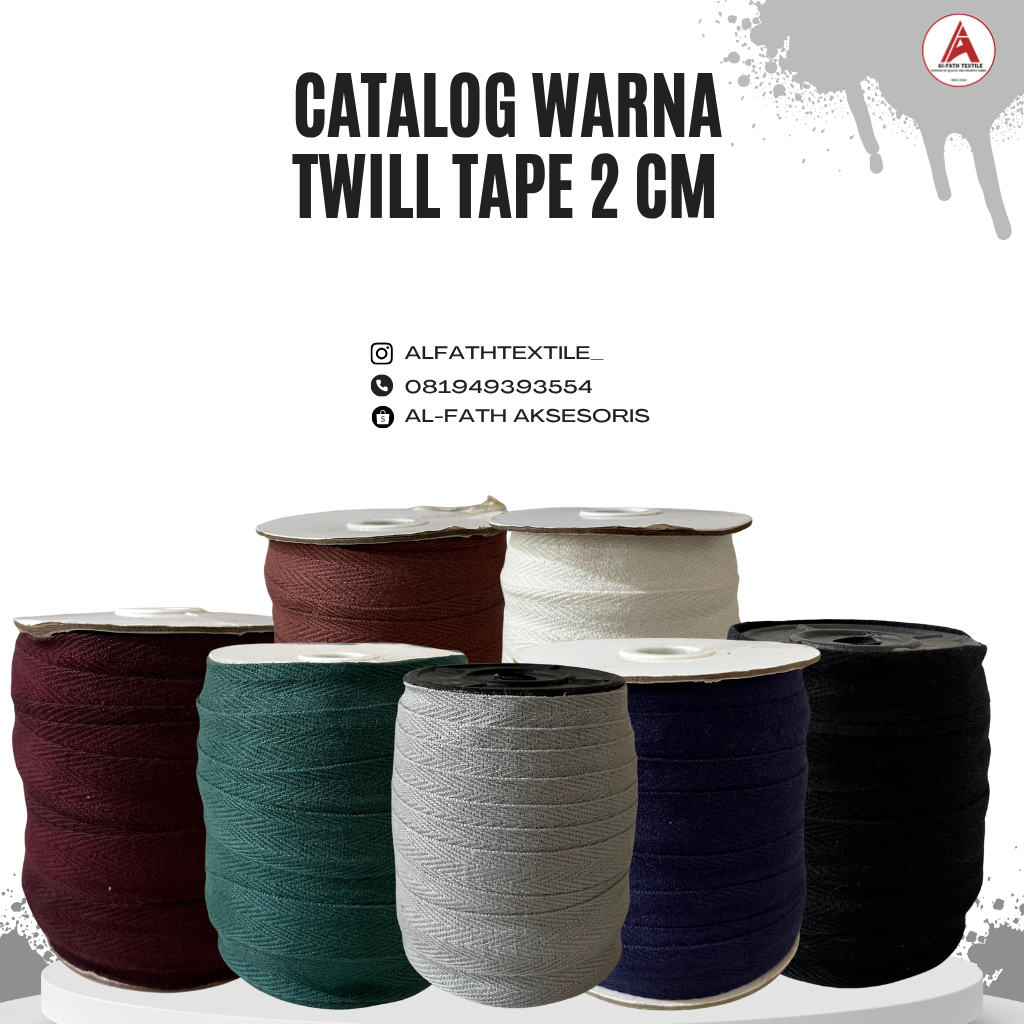 Twilltape 100% cotton 2 Cm / Tali label / Veterban / Pita/ Bisban Kerah / Tali Guling / Peterban