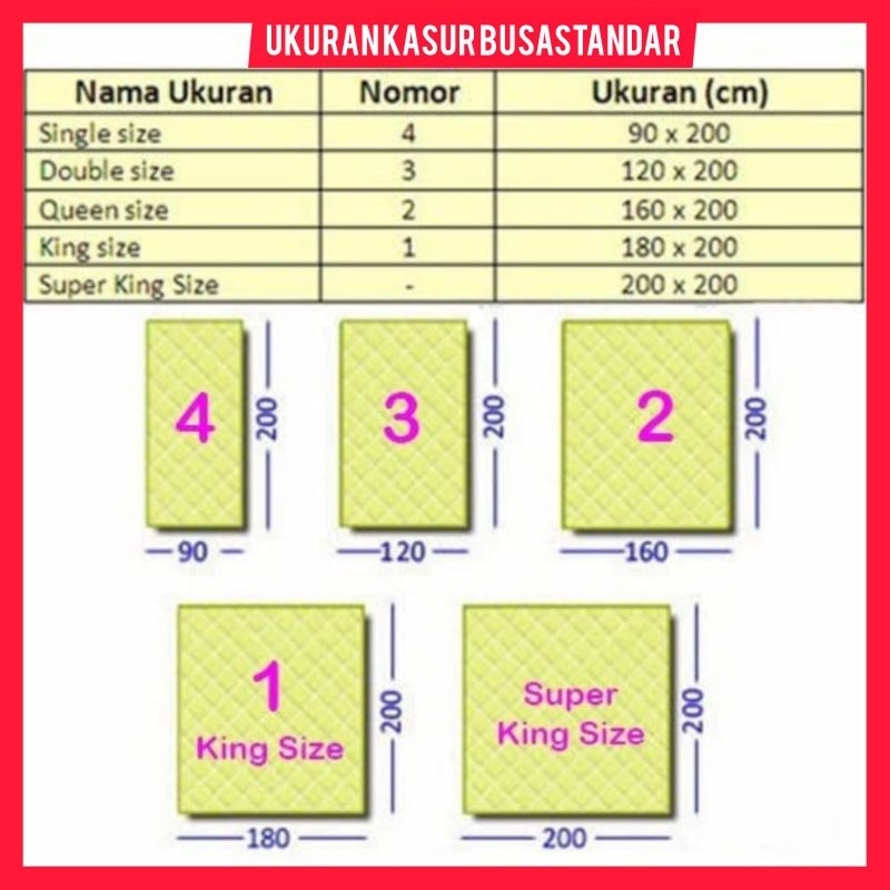200cm x 200cm, 200cm x 180cm, 200cm x 160cm, 200cm x 140cm, 200cm x 120cm, 200cm x 90cm