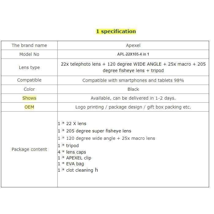 APEXEL 4 in 1 Lensa Smartphone Tele Wide Macro Fisheye
