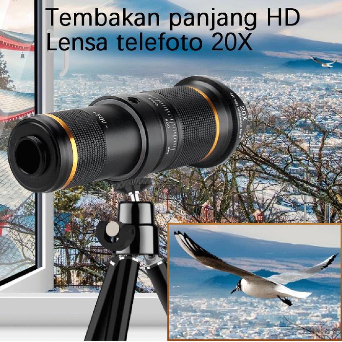 Lensa Telez oom 20X 4K HD Mobile Phone Universal Tri dan Jepit Tel eskop untuk HP Fokus Panjang Lens