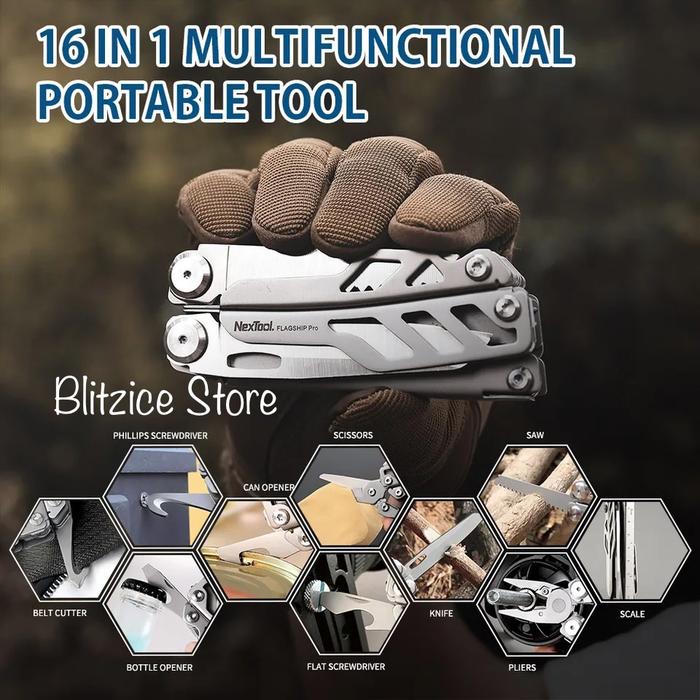 Nextool Flagship Pro 16 in 1 Multi Function Knife Saw Tool Survival Kit Kydex Sheath Pisau Lipat