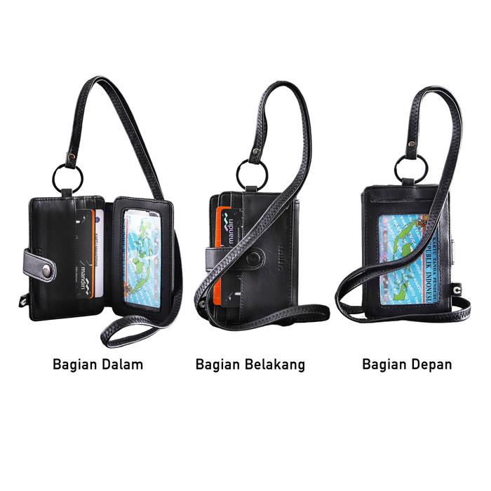 Cartiera Odet Lanyard ID Card Name Tag Kalung Pria Wanita Kulit Praktis Premium - BLACK