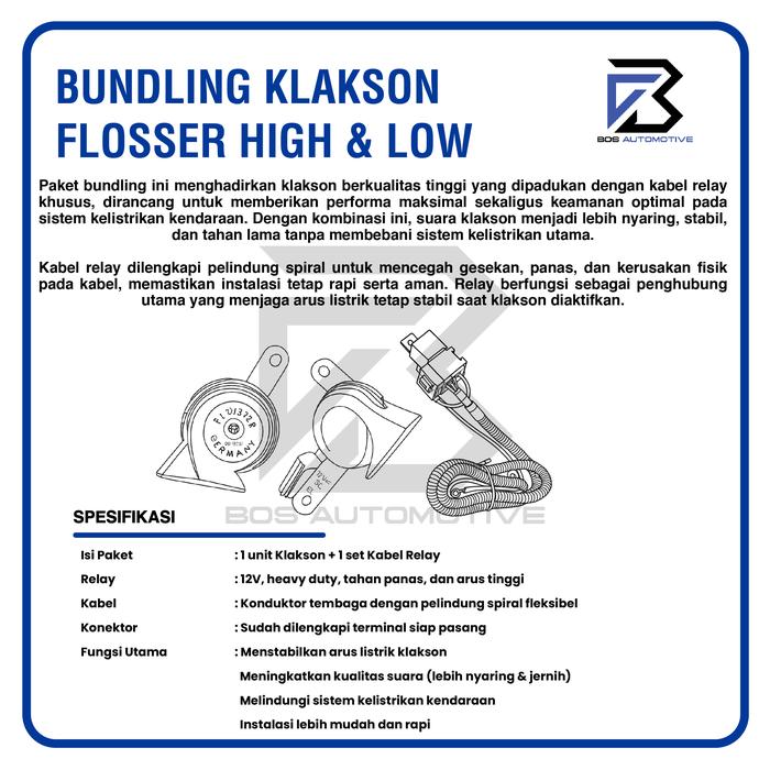 KLAKSON KEONG MOBIL MOTOR FLOSSER (FER) BMW GERMANY + KABEL RELAY SET KLAKSON 12V - HELLA VR-BLACK