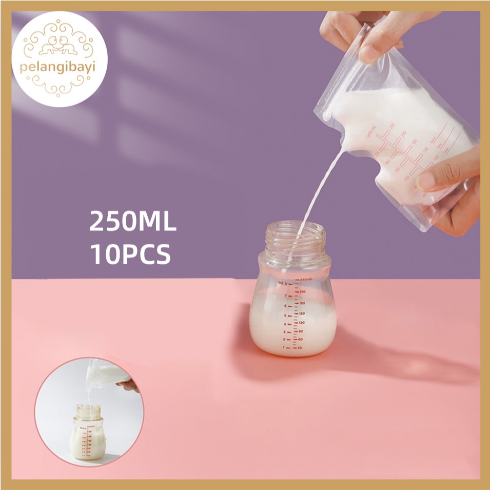 10PCS Kantong Asi 250ml Double Lock SUSU Bag BPA Free Breastmilk Storage Steril dan tidak berbau