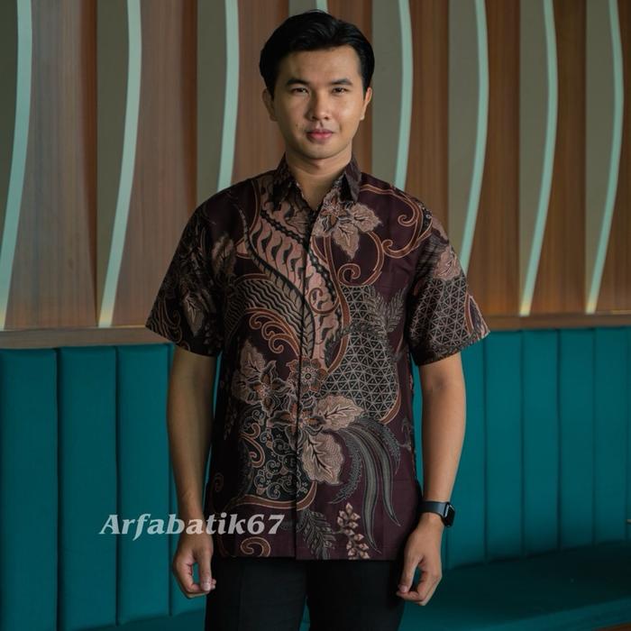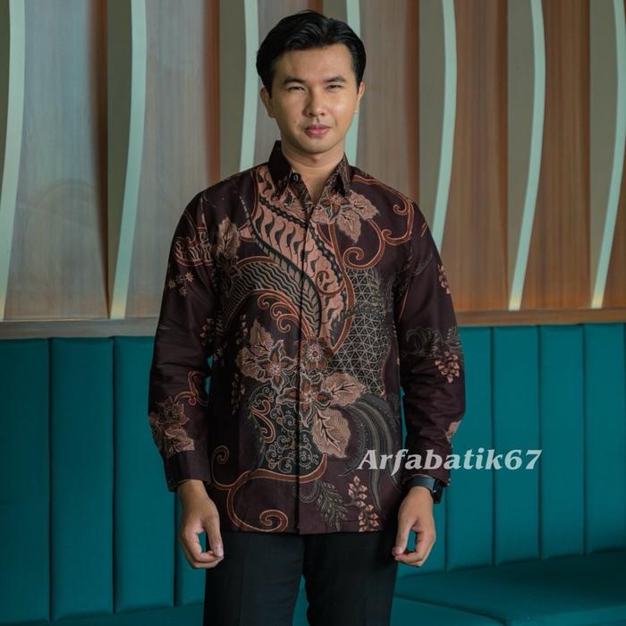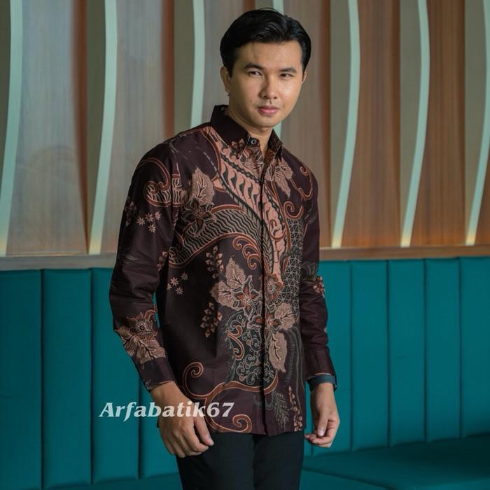 PARSHA MAHOGANY Kemeja batik pria premium lengan panjang katun prima premium lapis furing hero
