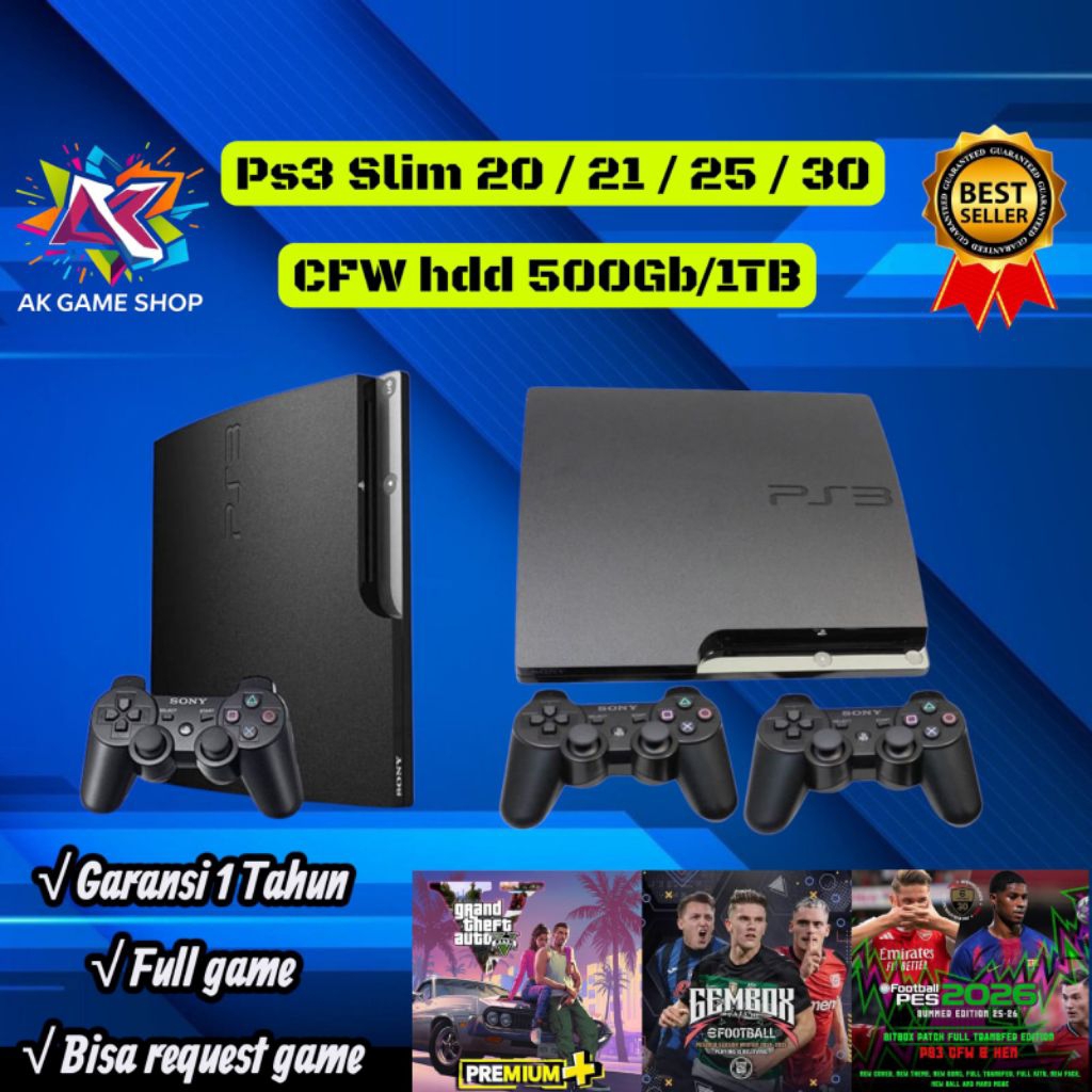 PS3 Slim 500GB + Full Game Terbaru + 2 Stick Wirelles Original