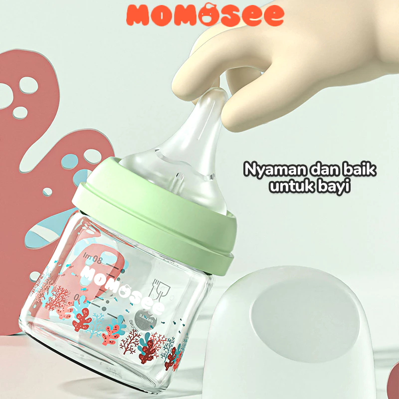 Momosee Botol Susu Bayi Kaca 80ml 160ml Botol Bayi BPA Free Baby Glass Bottle Newborn BB23