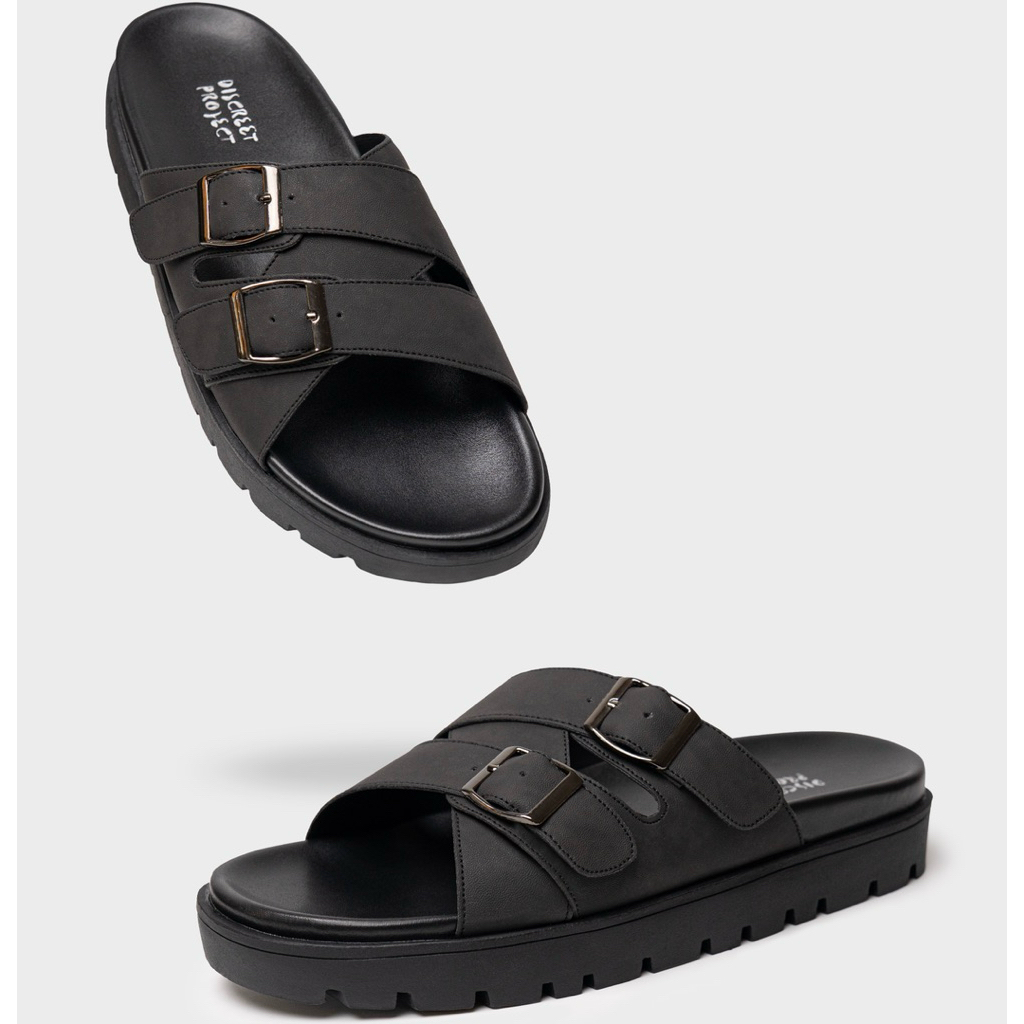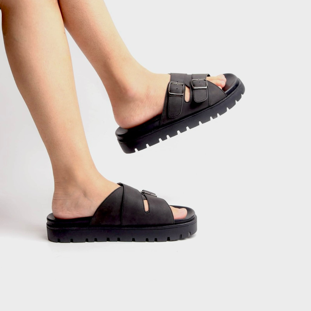 Discreet Project - Sandal Slip On EST 119 Hitam dan Taupe