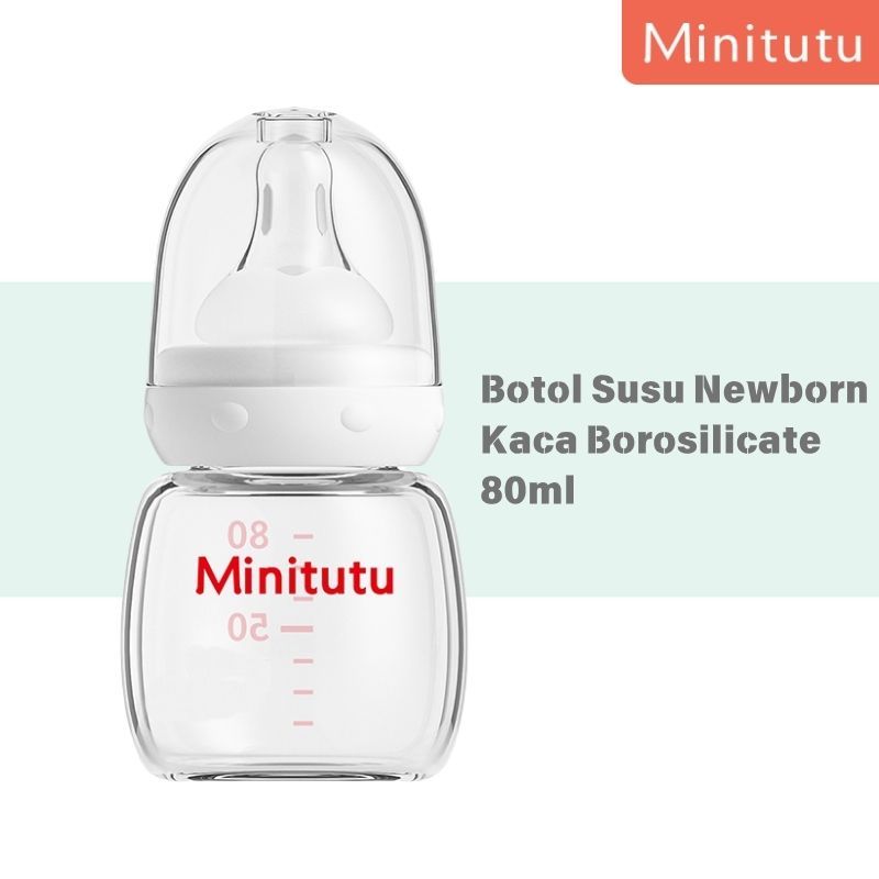 Minitutu Botol Susu Kaca Newborn Botol Susu Bayi 0-3 Bulan Anti Kolik 80ml BPA Free BB45