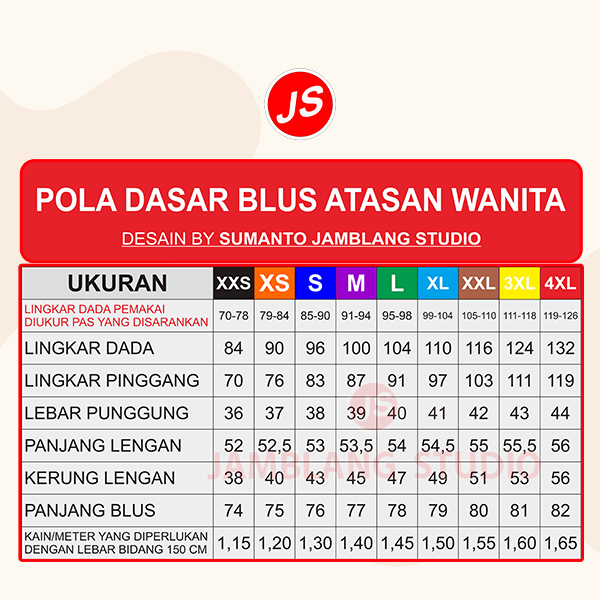Paket Pola Instan All Size Dasar Atasan / Dress Wanita | Pola Semua Ukuran XXS-4XL