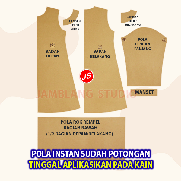 Paket Pola Instan All Size Gamis Kerut Bawah Dewasa | Pola Semua Ukuran XXS-4XL